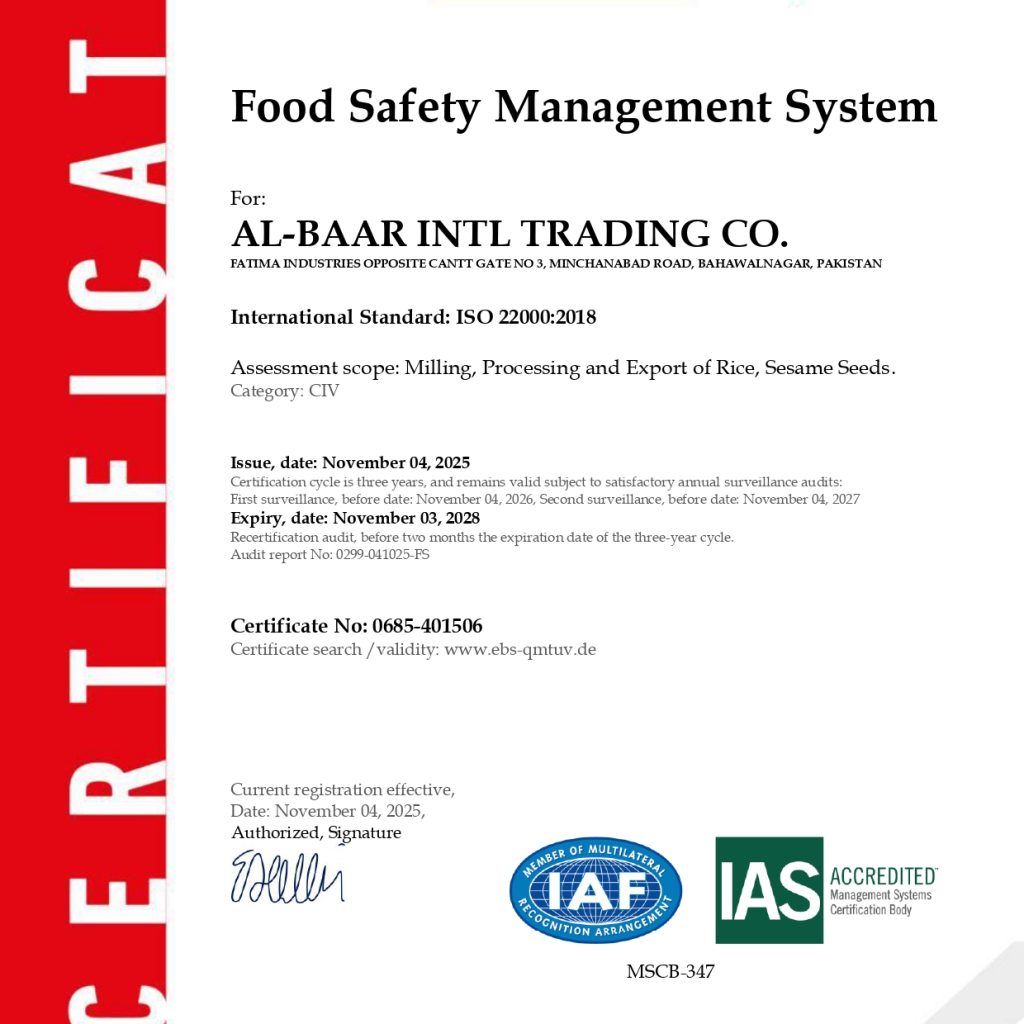 Al-Baar International Trading Co. stands out as a notable rice processor in addition to being a top producer of grains like corn, sesame, and rice. Our cutting edge production facilities maintain the highest standards,