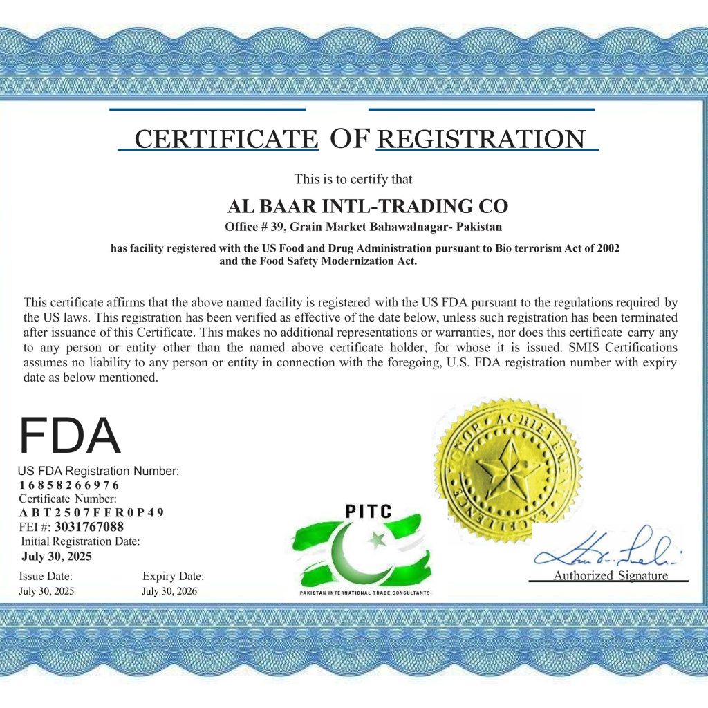 AL-BAAR INTL TRADING CO. is a dynamic group involved in various business activities with annual turnover running in millions of US dollars. The winner of Top Ten Exporter Trophy two years in a row is an ISO certified company and an integral trading arm of Al-Baar Intl. Trading Co.